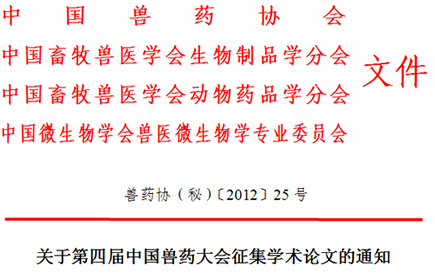 ![]() 各有关单位: 第四届中国兽药大会定于2012年9月1日至4日在北京举办。为广泛深入开展学术交流,大会拟出版学术论文集,安排优秀论文评选,并选择部分优秀论文在学术论坛上进行交流。现广泛征集论文。有关事项通知如下: 一、主办单位 中国兽药协会 中国畜牧兽医学会生物制品学分会 中国畜牧兽医学会动物药品学分会 中国微生物学会兽医微生物学专业委员会 二、征文范围 兽用生物制品学、兽医药品、兽医微生物学与免疫学等领域的最新研究进展、研究报告、经验交流等。文稿包括科研论文、专题报告、调查报告及文献综述等,欢迎和鼓励未公开发表的论文参加此次征文活动。如投稿文章已发表,请标明发表时间及所发刊物名称。 三、征文要求 1.文稿须按科技论文格式撰写,力求简洁,原则上字数不超过5000字(含标点、空格),附作者简介、中英文摘要、关键词和参考文献。具体要求参照《中国兽药杂志》投稿须知撰写。 2.对录用论文原则上不进行修改,文责自负。在论文编写过程中请特别注意字体、字号、参考文献和引用、图表等的格式。如果有图片,请提供清晰的扫描照片,或寄送标注明确、清晰的照片。 四、投递要求 征文截止日期为2012年7月30日。为便于论文评审工作顺利进行,希望作者尽早提交论文和“征文登记表”(见附件)。论文(Word文档)可通过电子邮件提交,同时通过邮局寄送稿件或确认可读写的论文拷贝软盘。论文投寄时请注明“兽药大会论文”字样。论文文稿和软盘无论录用与否一律不退,请自行保留备份。 五、论文评选原则及办法 (一)评选原则 1.凡同意在第四届中国兽药大会学术论文集中刊登的科技论文均具备评选资格; 2.各学会负责组织相关专业领域的论文评选; 3.评选工作遵循“科学公正、求实创新”的原则; 4.评选优秀论文的比例为提交论文的5%-10%。 (二)评选标准 1.论文应符合征文的范围及要求,书写规范,逻辑严密,层次分明; 2.论文应具有完整性和创新性,研究方向明确,内容详实、数据真实、结论可靠; 3.获得了创造性成果或具有良好的应用前景。 (三)评选程序 1.论文受理。按通知要求,在规定时间内提交符合格式要求的论文; 2.初评。各学会按照单位回避的原则,将汇总的论文分配给委员进行初审,各委员按20%比例筛选出初选优秀论文; 3.最终评选。各学会组织其主任委员、副主任委员和常务委员对初选的优秀论文,按照25-50%比例最终选出获奖优秀论文。 (四)奖励办法 1.优秀论文奖金平均为2000元/篇; 2.各学会负责向所评出的获奖者发放获奖证书和奖金,颁奖仪式在各学会的学术论坛上举行。 (五)其他 获奖名单在相关杂志或网站(如学会会刊、中国兽药信息网、中国兽药协会网站)上公布并公开征求意见。获奖者如有弄虚作假、剽窃他人成果的,一经查实立即取消获奖资格,并在各学会的学术网站及大会官方网站上通报。获奖论文将优先在《中国兽药杂志》上发表。 六、联系人及联系方式 兽用生物制品学征文请寄:中国畜牧兽医学会生物制品学分会 王乐元,E-mail:wangleyuan@ivdc.gov.cn,电话:010-62103566。 兽医药品类征文请寄:中国畜牧兽医学会动物药品学分会徐士新,E-mail:xushixin @ivdc.gov.cn,电话:010-62103658。 兽医微生物学与免疫学类征文请寄:中国微生物学会兽医微生物学专业委员会丁家波,E-mail:dingjiabo@ivdc.gov.cn,电话:010- 62103627。 地址:北京市海淀区中关村南大街8号 中国兽医药品监察所  邮编:100081 附件:第四届中国兽药大会征集学术论文登记表