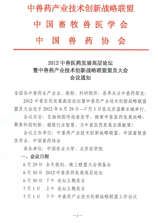 一、       中兽药产业技术创新战略联盟盟员大会预备会议