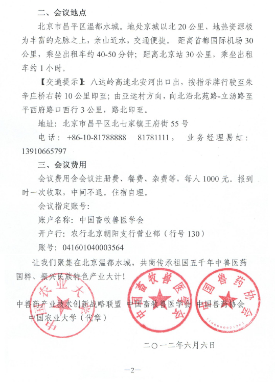 拟请科技部、农业部、教育部、农业部新药审评中心、中国社科院、中国中医科学院、中国兽药协会、中国畜牧兽医学会领导出席大会。