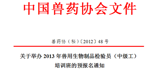 ![]() 各相关单位: 根据中国兽医药品监察所“农业47003019号职业技能鉴定站”2013年鉴定工作安排,计划2013年上半年举办两期兽用生物制品检验员(中级工)职业技能鉴定。因此,中国兽药协会计划于同期举办两期考前培训班。考虑到实验室条件和时间的限制,也有便于“职业技能鉴定站”尽早对考生进行考试资格初审。现进行预报名,相关事宜通知如下: 各兽用生物制品生产企业从事检验工作的人员,具备以下 条件之一者可以报名参加本次培训: (一)高中毕业连续从事本职业工作3年以上(含3年),并经本职业中级正规培训达规定标准学时数(200标准学时),取得结业证书。 (二)高中毕业连续从事本职业工作7年以上(含7年)。 (三)中专本专业或相关专业毕业,并连续从事本职业工作2年以上(含2年)。 (四)大专及以上本专业或相关专业毕业,并连续从事本职业工作1年以上(含1年)。 二、培训人数 两期名额共100名,为保证培训效果和质量,每期学员人数控制在50人以内(每个企业限报3名学员),未取得中国兽医药品监察所培训证书学员或待验收企业优先。参加人员按邮寄提交材料的先后顺序,由我会电话确认。 三、培训内容 兽用生物制品检验理论知识与实验操作技术 报名时间为2012年12月26日至2013年1月25日,额满为止;培训时间根据报名情况安排,详情请及时关注中国兽药信息网(http://www.ivdc.gov.cn)或中国兽药协会网(http://cvda.org.cn),或由我会电话通知已成功报名学员。 五、培训地点 中国兽医药品监察所 六、报名提交材料 (一)身份证原件及复印件(正反面复印一张A4纸)。 (二)工作单位开具的本职业(本岗位)工作年限证明原件(需加盖单位公章),2人以上参加鉴定考试请分别开具证明。 (三)学历证书、职业资格证书、职称证书复印件各一份。 (四)农业行业职业技能鉴定申报审批表。(附件1) (五)本人近期同一底版小2寸免冠白底彩色证件照片3张,照片背面注明本人姓名。 七、联系人及联系方式 联系人:董  微      手机:13718826893 电  话:010-62103991-606  E-mail:  cvdapx@cvda.org.cn 地  址:北京市海淀区中关村南大街8号综合楼308室 邮  编:100081 八、回执及缴费方式 1.请学员将报名回执、提交材料邮寄至协会秘书处。 2.已成功报名学员待协会发正式通知后,通过银行汇款缴纳培训费。 附件:1.农业行业职业技能鉴定申报审批表(点击下载) 2.2013年兽用生物制品检验员(中级工)培训班预报名回执(点击下载) 备注:因名额有限,协会将按照收到学员提交材料先后顺序确认报名情况