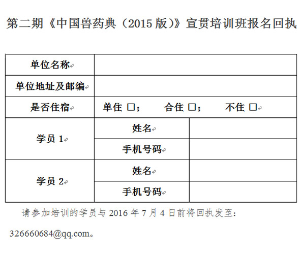 《中国兽药典(2015年版)》(以下简称《新版兽药典》)实施在即,为积极配合有关部门做好《新版兽药典》宣贯工作,我会与广东省动物保健品协会联合举办第二期《中国兽药典(2015版)》培训班。现就有关事项通知如下。 一、 培训对象