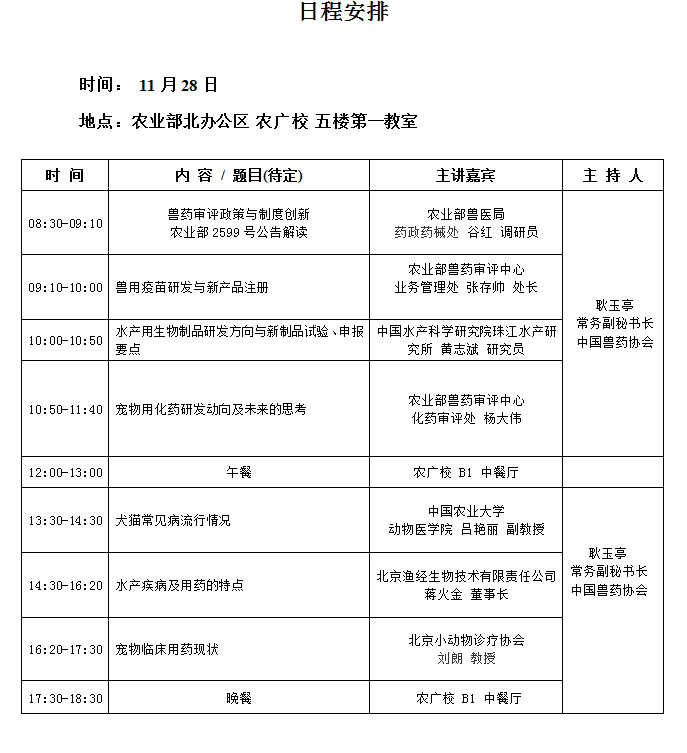 为促进宠物专用兽药和水产养殖用兽药研发进程,积极响应农业部关于解决临床急需、市场短缺兽药品种政策精神,经研究,定于11月28日在京举办宠物专用和水产养殖用兽药专题培训班,并邀请兽药管理、兽药评审、宠物诊疗、水产养殖等方面专家授课。现就有关事项通知如下: