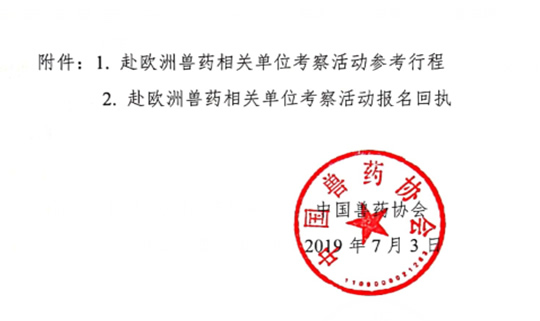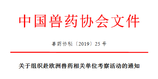 为加强国际交流,提升会员企业国际影响力,协会拟组织赴欧洲兽药相关单位考察活动。现通知如下: 一、主办单位 中国兽药协会 二、考察内容 拜访欧洲动保协会、巴斯德研究所、欧盟兽医药审批管理部门、英国兽药协会、Pirbright研究所与有关专家进行交流;参观硕腾公司等动保企业与公司代表座谈。 三、考察时间 2019年9月20日至30日 四、组团及报名方法 拟定考察人数20人,按照报名顺序进行电话确认。 五、收费标准及汇款方式 1. 费用标准:预收考察费用USD10000 /人,费用包含交通(机票经济舱)、餐饮、住宿(四星级酒店双床房,对住宿有特殊要求的代表需补交差价)及参观考察等,实际发生费用多退少补。 2. 汇款方式:另行通知。 六、注意事项 报名参加考察代表需提供个人护照首页照片,自行办理签证。 七、联系方式 中国兽药协会秘书处 联系人: 董 微: 13718826893 /010 -62103990 -601 杨 薇: 13811781877/010-62103990-612 E-mail:cvdagj@cvda.org.cn