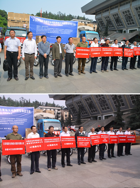 大灾面前有大爱,中国兽药协会各会员单位深知兽药企业的使命感与责任感,在得知灾区急需动物防疫物资的消息后,积极捐赠,为灾区生产自救、灾后重建奉献力量。经农业部专家工作组统筹安排,中国兽医药品监察所和中国兽药协会具体协调,中国牧工商(集团)总公司、中牧实业股份有限公司、中国动物卫生与流行病学中心(青岛易邦生物工程有限公司)、中国农业科学院哈尔滨兽医研究所维科公司、中国农业科学院兰州兽医研究所(中农威特生物科技股份有限公司)、武汉科前动物生物制品有限责任公司、武汉中博生物股份有限公司、广东大华农动物保健品股份有限公司、肇庆大华农生物药品有限公司、新疆天康畜牧生物技术股份有限公司、天津瑞普生物技术股份有限公司、金宇保灵生物药品有限公司等12家会员单位积极为灾区捐赠动物疫病防控物资,共计300余万元,并在第一时间送至抗震救灾的第一线。