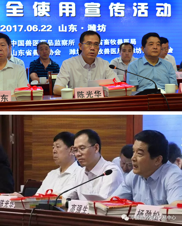 参加本次活动的领导和专家还有中国兽药协会李向东常务副会长、农业部兽医局药政药械处宋俊霞处长、中国兽医药品监察所科技处刘业兵处长;山东省各级行业管理部门、兽药质量检验单位的领导及专家;兽药生产经营、养殖场(户)代表300余人参加了本次活动。