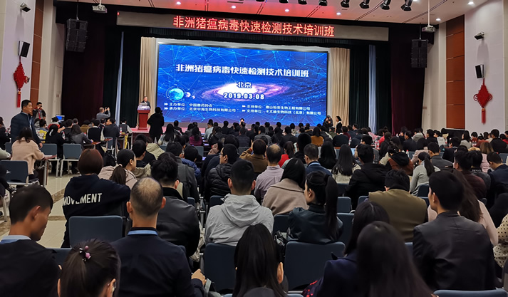 3月8日,由中国兽药协会主办,北京中海生物科技有限公司承办的非洲猪瘟病毒快速检测技术培训班在中国农业科学院国家农业图书馆报告厅正式召开。此次培训班旨在提升学员的快速自检能力和专业化检测水平,推进生猪屠宰及产品流通环节的检测工作,团结业内力量,更好的服务于非洲猪瘟的防控事业。来自全国各地疫控中心、动物卫生监督所、养殖场、屠宰场、食品加工厂、兽用生物制品生产企业、高校实验室、检测机构等182家单位的337位学员参加了培训。