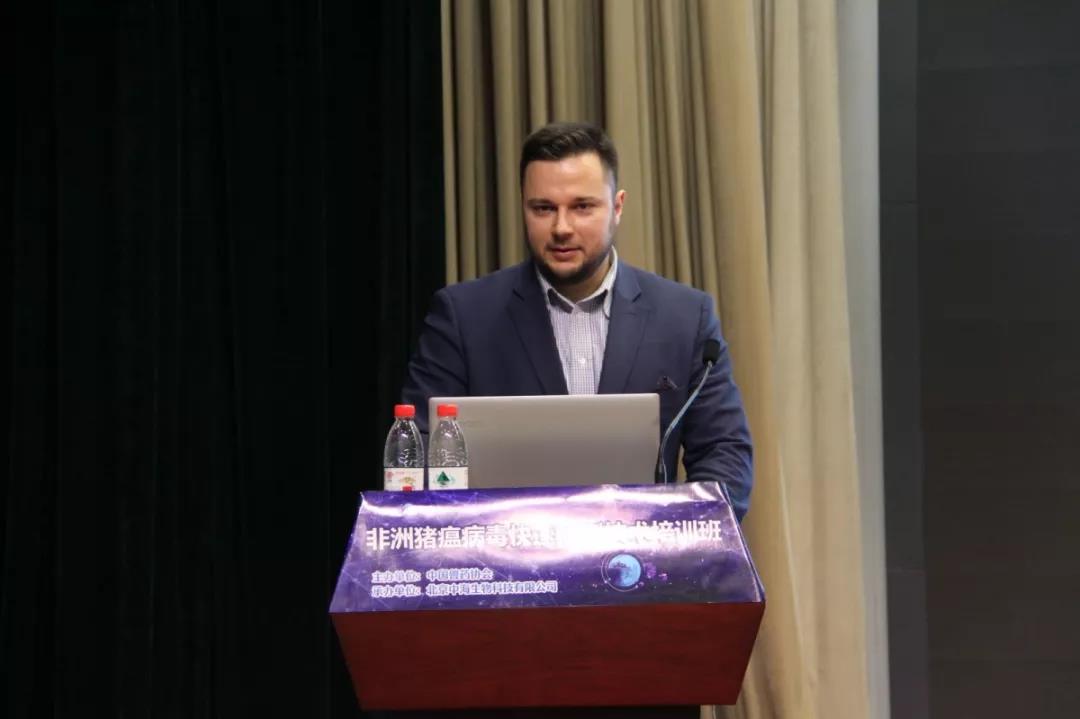 立陶宛LT公司专家帕维尔·卡拉比洛夫就“非洲猪瘟检测技术”展开交流授课,并从非洲猪瘟世界疫情形势、立陶宛疫情局势及国际立法角度对非洲猪瘟展开分析。他强调,疫情防控要做到合理有效的分区,这需要我们保持对空间的充分考虑,以及管理手段的强效落实。
