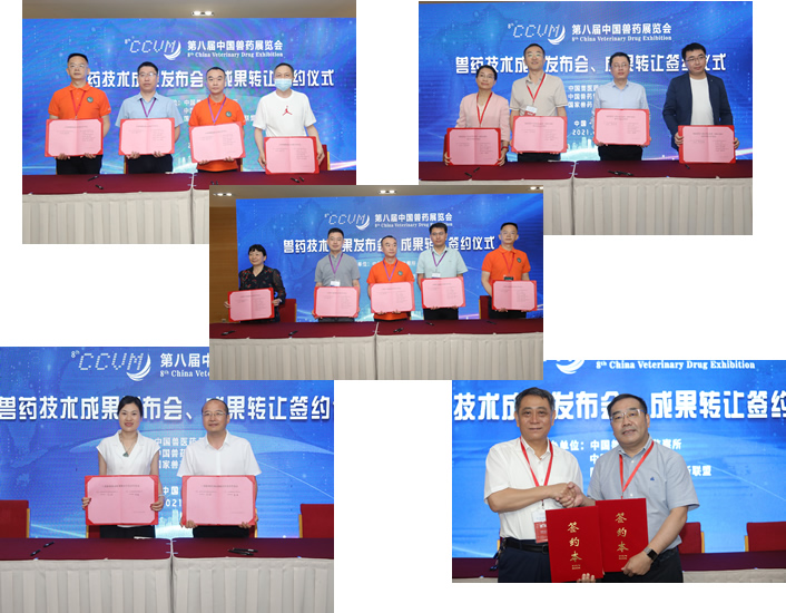 第八届中国兽药展览会隆重召开之际,6月19日,中国兽医药品监察所,中国兽药协会,国家兽药产业技术创新联盟,在郑州国际会展中心会议中心,联合举办了”兽药成果转让签约仪式”和”兽药技术成果发布会”。