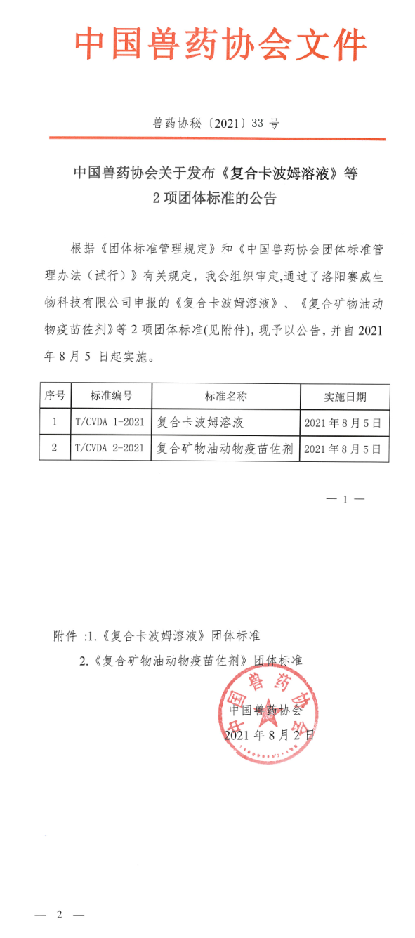 中国兽药协会关于征求《复合矿物油动物疫苗佐剂》等2项团体标准意见的公告