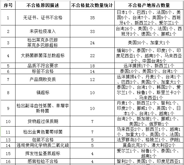 新华食品1月28日电(李楠)进口猪肉比国产猪肉好?新华食品通过梳理最近一年的不合格进境食品名单,发现过去一年共有来自32个国家和地区258批次的肉制品被检不合格,其中美国进口猪肉中检出我国明令严禁添加的莱克多巴胺即俗称“瘦肉精”,问题产品共30批次。 莱克多巴胺是我国农业部公布的16种瘦肉精之一。福建省食安办原主任钟安平表示,人在大量食用含有莱克多巴胺残留的肉类或内脏后,可能引发中毒症状,表现为恶心、头晕、肌肉颤抖、心悸、血压上升以及引发心血管疾病等。 不合格肉制品美国、中国台湾占了近1/3 新华食品统计发现,2013年10月至2014年11月国家质检总局公布不合格肉制品名单中,美国、中国台湾、泰国分别以检出45批次、44批次、24批次列第一、第二、第三,所占不合格肉制品批次分别为17.44%、17.05%、9.30%。其中美国以检出45批次占近1/5居首位。 证书不合格、未获检疫准入、检出莱克多巴胺和菌落总数超标为不合格主要原因。以上不合格产品均已依法做退货、销毁或改作他用处理,且未在国内市场销售。 分析显示,美国、中国台湾在不合格进境肉制品名单中共有89批次,占不合格进境肉制品批次的34.49%,超过总量的1/3。 2013年10月-2014年11月不合格进境肉制品产地名称汇总及分析: