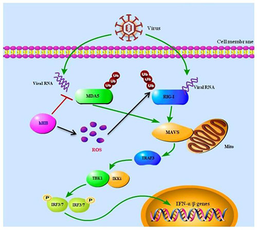近日,我所兽医生物技术国家重点实验室猪烈性传染病创新团队经过系统研究,首次证实人源血红蛋白β亚基(hHB)具有调节抗病毒天然免疫应答的功能,并明确了hHB调控RIG-I/MDA5介导的抗病毒天然免疫反应的分子机制。相关研究成果发表在病毒学专业期刊《病毒学杂志(Journal of Virology)》上。 血红蛋白主要表达于脊椎动物的红细胞内,是动物体内最重要的呼吸蛋白之一。除载氧功能外,还能储存能量、维持渗透压、抗菌和发挥类酚氧化酶活性等,是研究蛋白质多重生物学功能的理想模式分子之一。近年来的研究发现,血红蛋白在抵抗病原体入侵、调控机体天然免疫应答过程中也发挥了重要作用。其中,血红蛋白β亚基(HB)作为血红蛋白的重要组成成分,是解析血红蛋白在天然免疫中的功能的重要切入点。 本研究揭示,hHB能通过RIG-I和MDA5介导的信号通路对仙台病毒、新城疫病毒、水泡性口炎病毒和脑心肌炎病毒等不同的RNA病毒复制产生不同的调节作用。通过进一步探索其相关调节机制发现,hHB一方面通过直接阻碍MDA5-dsRNA互作来抑制MDA5介导的抗病毒天然免疫反应。另一方面,hHB还能以ROS作为中介,通过增强细胞内ROS累积间接促进RIG-I发生K63位的聚泛素化修饰,进而增强RIG-I介导的抗病毒天然免疫反应。本研究首次证明,hHB是RIG-I/MDA5介导的抗病毒天然免疫反应的多效性调节因子,全面阐释了人源血红蛋白参与天然免疫调控的分子机制,揭示了细胞微环境中的氧化应激水平在抗病毒先天免疫调节中的重要性,丰富了分子免疫学理论。 杨倩博士为本研究的第一作者,仇华吉研究员为通讯作者。该研究得到国家自然科学基金项目(31600720)的资助。(杨倩) http://www.ivdc.org.cn/kydt/201907/t20190711_50781.htm (责任编辑:admin) |