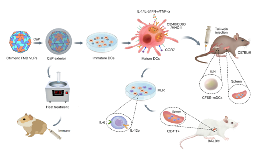近日,中国农业科学院兰州兽医研究所兽用纳米材料与应用课题组在前期突破口蹄疫病毒样颗粒(VLPs)关键技术及产品工艺的基础上,进一步利用生物矿化的概念和技术,研制出耐热口蹄疫VLPs疫苗,使常规口蹄疫VLPs能够在室温中长时间保存,克服了VLPs疫苗的冷链需求限制,开辟了VLPs疫苗换代产品的新阶段。相关研究成果以“Biomineralization improved the thermostability of foot-and-mouth disease virus-like particles and protective immune response”为题,作为封面文章发表在工程技术1区期刊《Nanoscale》上。