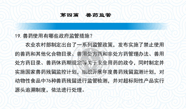 兽药使用与食品安全二十五问--兽药使用有哪些政府监管措施?
