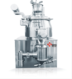 物料通过提升加料或真空上料系统加到制粒舱内。通过纳诺特殊设计的搅拌桨对物料进行多维切变状态流动。并由喷枪系统加入粘合剂,使物料在舱内形成索带状软材,经过搅拌桨和切碎刀成为均匀的湿颗粒。再通过湿整粒机出料到沸腾制粒机中进行干燥。