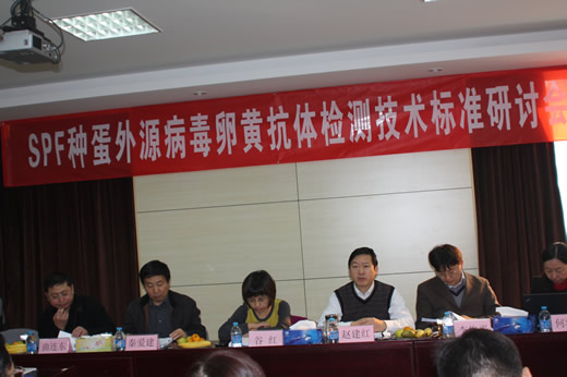 中国兽药协会于2012年11月2日在北京召开了“SPF种蛋外源病毒卵黄抗体检测技术标准研讨会”。农业部兽医局药政药械处副处长谷红出席会议。会议由中国兽药协会秘书长赵建红主持。中国兽医药品监察所病毒室副主任李俊平、中国农科院哈尔滨兽医研究所实验动物中心主任曲连东、扬州大学兽医学院院长秦爱建等相关技术专家、参与标准研究工作企业相关技术人员、SPF蛋生产厂家以及协会相关人员共20余人参加了本次会议。