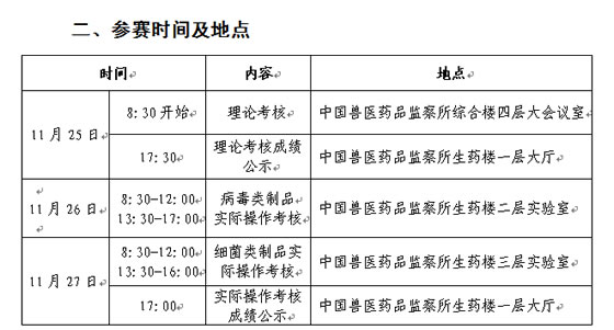 ![]() 各有关单位: 为提高兽用生物制品检验人员技能,提升兽药行业从业人员水平,近期,中国兽药协会将结合中国兽医药品监察所职业技能鉴定站兽用生物制品检验员(高级工)鉴定工作,举办首届兽药职业技能大赛。现就有关事宜通知如下: 一、组织单位 中国兽药协会 农业部兽药行业职业技能鉴定指导站 中国兽医药品监察所职业技能鉴定站 ![]() 三、参赛工种 兽用生物制品检验员(高级工) 四、参赛人数 限制在150人以内,按报名先后顺序遴选50家企业,每家企业须3人。 五、参赛条件 (一)国内兽用生物制品生产企业专职检验人员; (二)报名要求(具备以下条件之一者): 1.取得高等职业学校(职业大专)兽用生物制品检验专业毕业证书,并连续从事兽用生物制品检验工作2年以上(含2年); 2. 取得本科以上(含本科)兽用生物制品检验专业或相关专业(兽医、兽药、生物技术等)毕业证书,并连续从事兽用生物制品检验工作2年以上(含2年)。 六、参赛方法 (一)理论考核:所有报名参赛人员; (二)实际操作考核:获理论考核成绩前60名(含并列60名)者。 七、考核范围 考核内容从农业部兽用生物制品检验员(高级工)鉴定试题库选取。 (一)理论考核范围:兽用生物制品检验相关知识。 (二)实际操作考核范围:油乳剂灭活疫苗黏度检查;油乳剂灭活疫苗稳定性检查;鉴别检验(中和试验);TCID50测定;EID50测定;外源病毒检验;支原体检验;活菌计数;多杀性巴氏杆菌鉴别检验;明胶穿刺培养法进行鉴别检验。 八、考核及奖项 (一)理论、实际操作考核按中国兽医药品监察所职业技能鉴定站兽用生物制品检验员(高级工)鉴定相关标准执行; (二)奖项设置 1. 集体奖:一等奖、二等奖、三等奖,参赛企业3名参赛人员皆入围实际操作考核,并按3人两项比赛成绩总分计,取总分排名靠前者; 2. 个人奖:一等奖、二等奖、三等奖,按两项比赛成绩总分计,取总分排名靠前者。 九、报名时间 2013年10月30日至2013年11月15日,请申报单位将回执加盖公章(见附件)传真至协会秘书处并将三人报名材料一同邮寄至协会秘书处,我会将电话通知报名成功的参赛人员,额满为止。 十、报名材料 (一)工作单位开具的本人兽用生物制品检验岗位工作年限证明原件(需加盖单位公章),两人以上需分别开具证明; (二)本专业最高学历证书复印件一份; (三)身份证复印件一份; (四)以上复印件材料需申报单位审核并加盖公章; (五)本人近期同一底版1寸免冠白底彩色证件照片2张,小2寸免冠白底彩色证件照片1张,照片背面注明姓名。 十一、考前材料领取 时间:2013年11月24日9:00-17:00 地点:中国兽药协会秘书处会员部 领取准考证和参赛须知等材料 十二、其他 (一)参赛人员食宿自理,不收取参赛费及考务费。 推荐酒店: 中监宾馆,总台电话:010-62103700 中国农业科学院研究生院招待所,总台电话:010-62126588 速8酒店(魏公村店),总台电话:010-62165611 如家快捷酒店(大慧寺店),总台电话:010-62120606-9 汉庭酒店(中关村四通桥店),总台电话:010-68420808 7天连锁酒店(北理工店),总台电话:010-88411855 (二)联系方式 中国兽药协会秘书处会员部 姜 冰:010-62103991转601、18911905912 张 莉:010-62103991转617、15801368281 传 真:010-62103987或010-80115555转477979 E-mail: cvdahy@cvda.org.cn 地 址:北京市海淀区中关村南大街8号综合楼302室 邮 编:100081 附件:首届兽药职业技能大赛报名回执 中国兽药协会 2013年10月28日 附件:首届兽药职业技能大赛报名回执 (责任编辑:admin) |