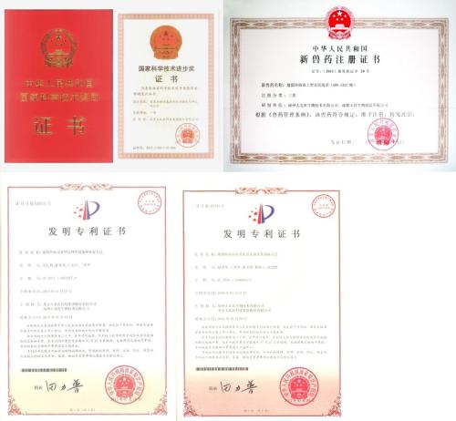 附:国家科技进步一等奖证书、新兽药注册证书、发明专利证书 |