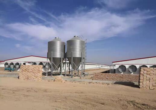建设中的天镇伟嘉60万头金猪工程产业扶贫项目(一期)自动饲喂系统料塔