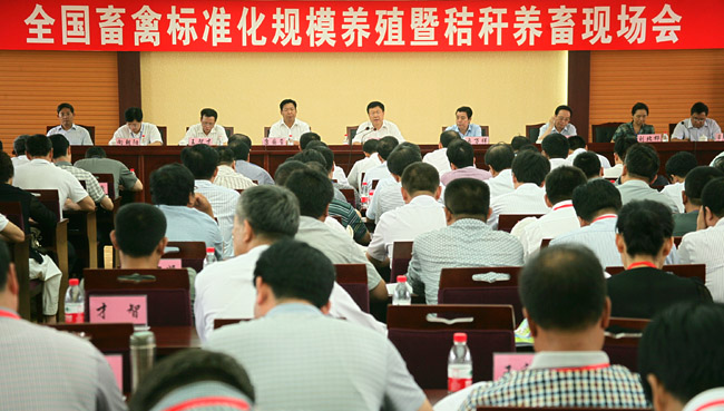 本网讯 8月22日-23日,农业部在甘肃兰州召开全国畜禽标准化规模养殖暨秸秆养畜现场会,系统总结畜禽标准化规模养殖和秸秆养畜工作取得的成效,交流各地好经验好做法,部署下一阶段重点工作。农业部副部长于康震强调,要认真落实中央关于加快发展牛羊肉生产指示精神,下大力气推进肉牛肉羊标准化规模养殖,推广秸秆养畜模式,确保牛羊肉基本自给。 近年来,各级畜牧兽医部门坚定不移推进畜禽标准化规模养殖,加快发展现代畜牧业,为完成“保供给、保安全、保生态”三大目标任务奠定了坚实基础。标准化规模养殖的快速发展使畜牧业综合生产能力不断增强,畜产品产量稳定增长,市场供应充足;畜产品质量安全保障能力显著提升,2012年,畜产品监测合格率达99.7%;草原生态和畜牧业协调发展,2012年,8个牧区省份牛羊肉产量415.4万吨,同比增长3.2%;全国草原综合植被覆盖度达53.8%,同比增加3个百分点。