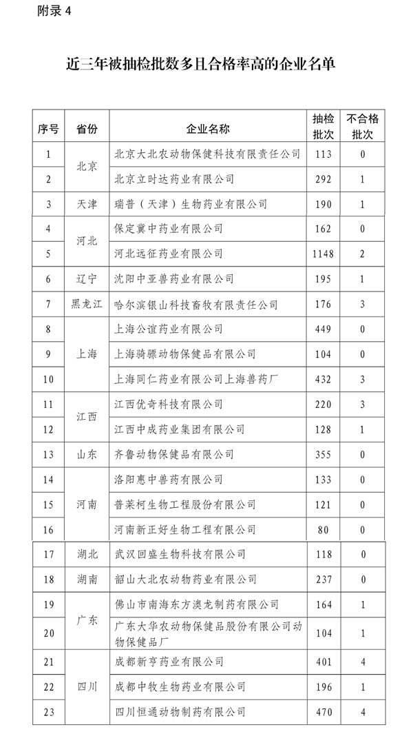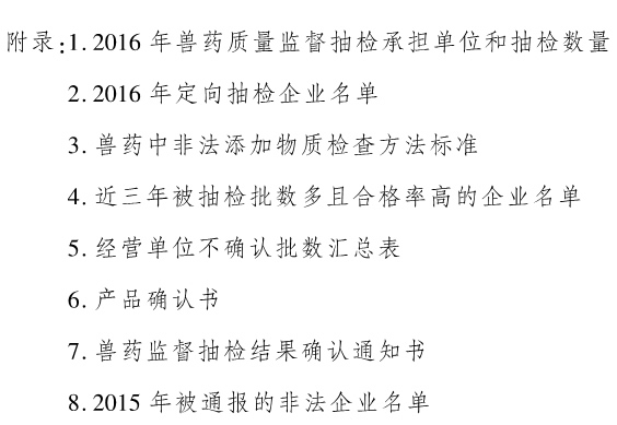 根据《兽药管理条例》规定,为做好2016年兽药质量监督抽检工作,充分发挥兽药监督抽检效能,特制定本计划。 一、组织实施 各省(自治区、直辖市)兽医主管部门按照本计划要求和《2016年兽药质量监督抽检承担单位和抽检数量》(附录1)确定的检测任务,结合本辖区兽药监管特点,制定本辖区兽药质量监督抽验计划,辖区计划抽检数量不得低于本计划下达的抽检批次。中国兽医药品监察所(以下简称中监所)和省级兽药监察所承担本计划抽检工作。 二、抽检原则 兽药质量监督抽检要遵循重点突出、科学合理、客观公正的原则,重点抽检兽药生产经营问题较多、诚信较差企业的产品以及未赋二维码产品。要注意合理配置检验资源,减少信誉好、产品质量稳定企业的产品抽检比例,原则上对每个标称生产企业抽检批次累计不应超过本年度抽检总批次的1%。重点加大近年来没有实施抽检企业的产品抽检力度,在本年度内,各地原则上应对本辖区兽药生产企业至少实施1次监督抽检。 三、抽检比例 (一)品种比例 各地抽检的水产、蚕、蜂用兽药产品抽检批次应占抽检批次总数的5%以上。 (二)抽检类别比例 1.监测抽检。近年来未被抽检兽药生产企业的产品、本辖区新建或新增剂型兽药生产企业的产品以及进口兽药产品,其抽检批次应占全年抽检批次的30%。监测抽检产品来源于生产、经营、使用环节,原则上各环节(生产、经营、使用)抽检批次按2:5:3比例进行,辖区内生产企业在20家以下的,上述比例可适当调整。 2.跟踪抽检。2015年以来被列入兽药质量监督抽检通报的产品、有被举报记录企业的产品以及被列入重点监控企业的产品列入跟踪抽检范围,其抽检批次应不少于全年抽检批次的20%。 3.定向抽检。2015年度我部通报并经企业确认非该企业产品累计6批次(含6批次)以上、且企业确认非该企业产品占被抽检产品总数30%以上的企业(附录2)列为定向抽检范围,其抽检批次应不少于全年抽检批次的20%。企业所在地省级兽药检验机构应加强对该类企业产品的监督抽检,增加全年抽检批次。 4.鉴别抽检。对抽样或检验过程中发现涉嫌添加非法药物成分的产品需列为鉴别抽检,包括涉嫌改变组方产品、涉嫌添加违禁药物产品、中兽药中添加化学药物产品,抽检批次应占全年抽检批次的30%。 鉴别抽检的检验应当执行《兽药国家标准补充检查方法》(农医发[2009]17号)以及农业部公告第1848号、第1868号、第1956号、第2320号、第2333号、第2353号等农业部发布的补充检查方法。对于没有补充检查方法标准的,可按《兽药中非法添加物质检查方法标准》(附录3)自行建立补充检查方法。使用补充检查方法所得出的检验结果,可以作为兽药监督管理部门认定兽药质量的依据。 5.质量情况摸底抽检。在经营、使用环节抽取样品,重点对非法添加情况进行摸底抽检,抽取的样品可以不进行样品确认,以掌握兽药质量的真实情况。按照附录1中下达的检测任务数量执行,中药、化学药品各半,对可能存在的非法添加物进行全面筛查、确认。第一、二季度分次完成抽样任务,第三季度前单独上报结果。 (三)兽用生物制品的监督抽检 按照“经营使用环节抽样是原则、批签发抽样是例外”原则,加大重大动物疫病疫苗经营使用环节抽样比例,确保产品质量。其他兽用生物制品抽检重点为近5年未被抽检企业的产品、未开展过监督检验的品种、涉嫌违法改变制苗菌(毒)种以及列入监督抽检通报的产品,包括进口兽用生物制品。加强禽用活疫苗外源病毒检验。进一步加大抽检批次,对所有兽用生物制品品种逐步做到全覆盖。 (四)其他 近三年被抽检兽药产品批数超过100批,合格率大于98%、产品不确认率小于4%、无农业部公告第2071号规定情形等违反兽药管理规定的企业(附录4)生产的产品由中监所进行抽检,其他任务承担单位只对其产品进行监督检查,不对其产品进行抽样检验。2015年在附录4中的企业除总批数外,其他条件均满足的仍继续保留。 辖区内没有跟踪抽检和定向抽检企业的,其所占比例调整为监测抽检与鉴别抽检各半。 四、抽样 (一)抽样单位 坚持抽样检验和监督检查相结合,被抽样单位所在地兽医主管部门应协同省级兽药监察所共同组织抽样,并对被抽样单位实施监督检查。 (二)抽样及监督检查要求 1.抽样活动要严格执行《兽药监督抽样规定》(2001年农业部第6号令)。抽样程序要符合规定,抽样单填报信息要完整,抽样时要清点所抽取产品的库存数量,并在抽样单上标注。从经营、使用环节抽样时,还应对所抽取样品的购销情况进行核实。核实内容包括:购买方式、供货单位、人员和联系电话、进货时间、进货数量等,上述内容应在抽样单上标注,并经双方签字认可。同时,应收集购货发票复印件留存备查。 2.对2015年度经生产企业确认非该企业产品累计3批次以上、且企业确认非该企业产品占被抽检产品总数75%以上的兽药经营门店(附录5)要列为重点监督检查单位,并加大对其经营产品的抽检比例。 3.抽样时发现列入《禁用兽药清单》(农业部公告第193号、第560号)和《兽药地方标准废止目录》的产品、未经我部批准的产品、过期失效产品、改变标准或改变处方产品、近两年列入我部发布的兽药质量通报同一批号的假劣产品,以及2015年被通报为非法企业(附录8)的所有产品,应由协同抽样兽医主管部门