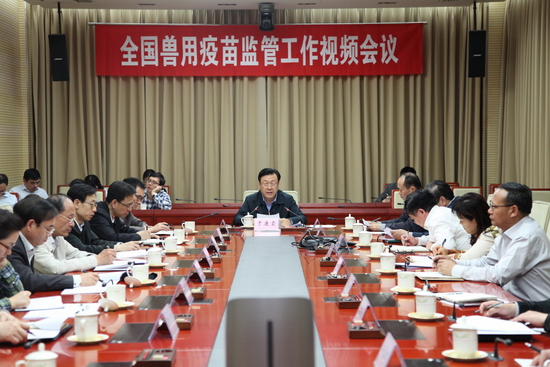本网讯 5月6日,农业部召开全国兽用疫苗监管工作视频会议。农业部副部长于康震强调,要切实加强监管,狠抓责任落实,坚持“产出来”“管出来”两手抓、两手硬,有效确保兽用疫苗质量安全,为维护养殖业生产安全、动物产品质量安全和公共卫生安全做出新的更大贡献。