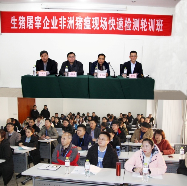 根据中华人民共和国农业农村部公告[第119号]要求,为进一步做好非洲猪瘟防控工作,全面开展生猪屠宰及生猪产品流通等环节非洲猪瘟检测。2019年1月3日,“全国生猪屠宰企业非洲猪瘟现场快速检测操作轮训班(第一期)”如期在农业农村部青岛培训基地举办,本期参加培训的68名学员主要来自山东省生猪屠宰企业。![]() 农业农村部培训基地丁明义主任致辞并宣布开班;山东省畜牧兽医局陶开宇处长对企业开展非洲猪瘟检测等屠宰检疫、健康养殖和健康肉文化建 设等的相关政策要求进行了详细解读和传达;中国动物卫生与流行病学中心国家外来动物疫病研究中心处长吴晓东博士主讲了自疫情发生以来国内非洲猪瘟防控形势变化和工作要求;中国