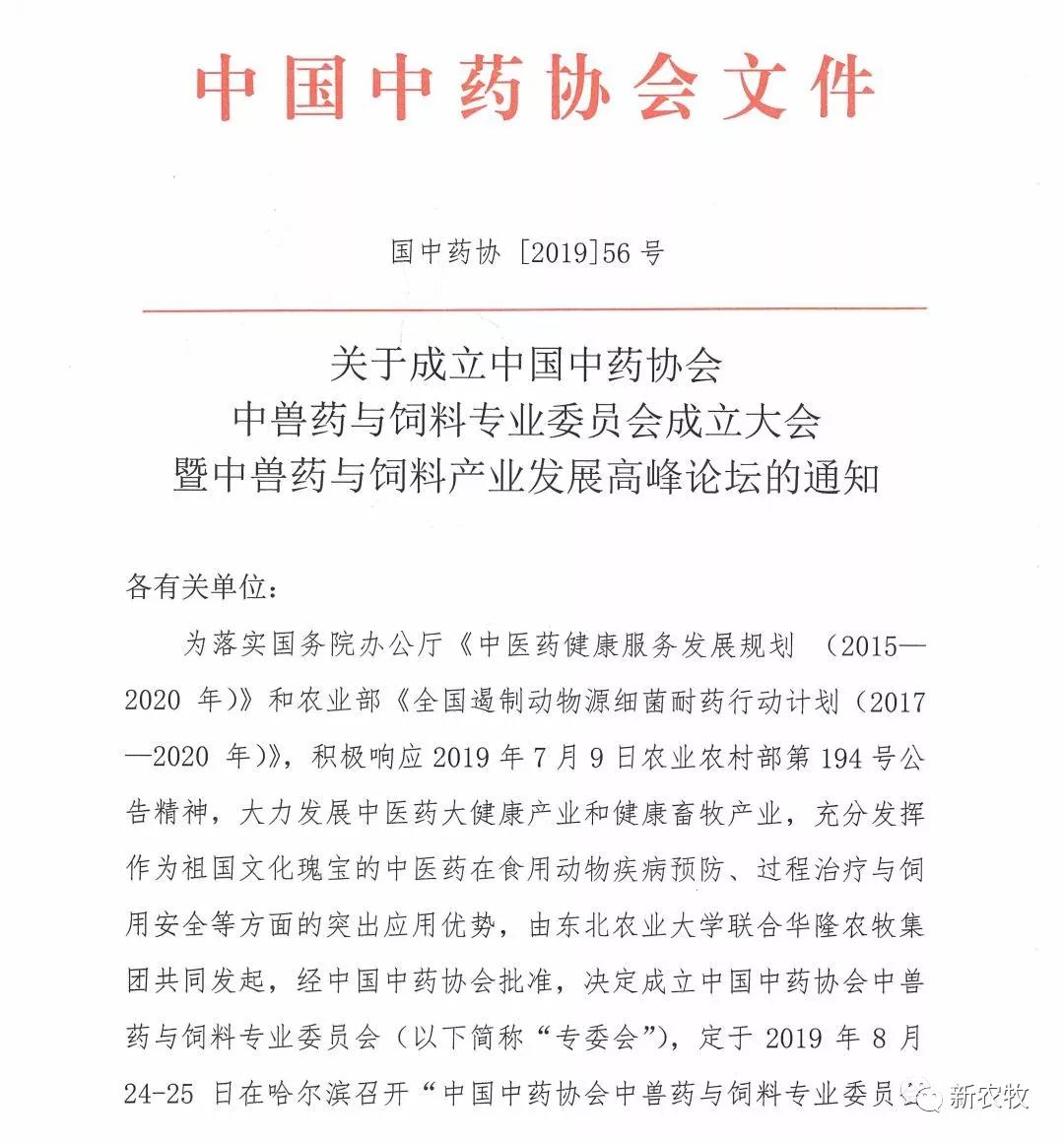 中国中药协会中兽药与饲料专业委员会成立大会暨中兽药与饲料产业发展高峰论坛即将隆重举办