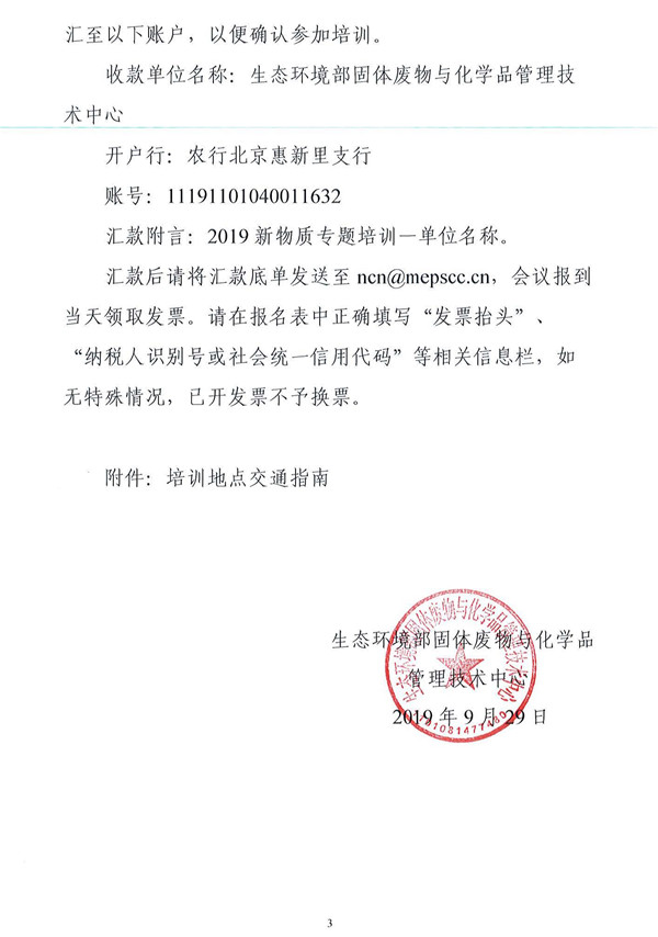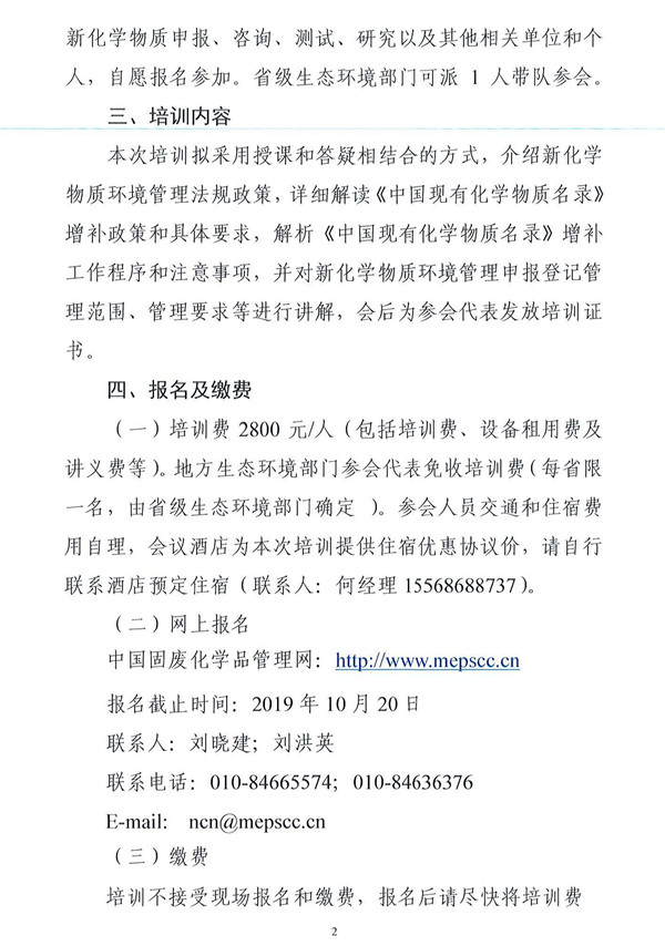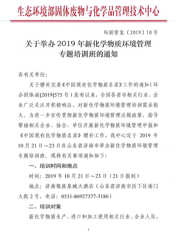 关于举办2019年新化学物质环境管理专题培训班的通知