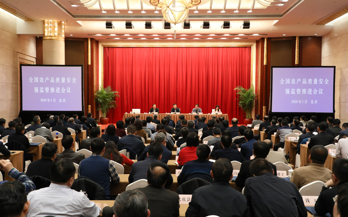 本网讯 1月14日,全国农产品质量安全强监管推进会议在北京召开。农业农村部副部长于康震出席会议并讲话。会议强调,农业农村部门要对标对表全面建成小康社会目标,围绕农业稳产保供的要求,坚持狠抓农产品质量安全监管,牢牢守住农产品质量安全底线,不断提升人民群众的获得感幸福感安全感。 会议要求,充分认识2020年加强农产品质量安全监管的重要意义,把握思想理念强、体系队伍强、制度机制强、工作作风强、共治共享强、监管效果强的深刻内涵,重点抓好六方面工作。一要强化监测评估工作,提高风险发现与处置能力,突出风险防范强监管。二要坚持问题导向,标本兼治、综合施策,治理突出问题强监管。三要以高标准引领农业高质量发展,增加优质绿色农产品供给,推进对标达标强监管。四要狠抓制度执行力,提升治理公信力,构建现代制度强监管。五要创新监管理念、方式和技术,运用先进技术强监管。六要发挥考核的“指挥棒”和激励鞭策作用,用好督导考核强监管。同时,要加强基层体系队伍建设,为做好今后工作提供有力保障。 农业农村部总农艺师马爱国主持会议。各省、自治区、直辖市和计划单列市,新疆生产建设兵团农业农村部门有关同志,农业农村部有关司局和部分直属事业单位,卫生健康委、海关总署和市场监管总局有关同志参加会议。