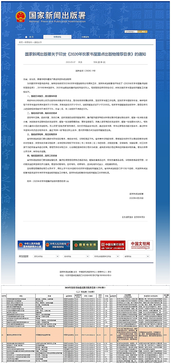 近日,国家新闻出版署印发了《2020年农家书屋重点出版物推荐目录》,中国兽医药品监察所编撰的《兽药安全使用知识手册》被列入推荐目录。 “农家书屋”由新闻出版总署会同中宣部、中央文明办、农业农村部等部委设立实施,面向农村,为广大农民普及科技知识,传播先进文化,满足农民文化需要,提供农民实用书刊,是解决广大农民群众“买书难、借书难、看书难”的重大举措,是加强我国农村文化建设的一项重要工程。2020年重点推荐一批党的创新理论,决胜全面小康、决战脱贫攻坚题材,以及加强疫情防控,革除滥食陋习、改善人居环境等优秀出版物。 近年来,为满足广大农村养殖场(户)和基层兽医工作者的需求,中监所组织编写的《兽药安全使用知识手册》等系列丛书,以浅显易懂的文字、简洁形象的图片,向广大农村基层养殖场(户)宣传兽药使用政策法规,传播兽药科学使用知识,在“科学使用兽药 践行质量兴农 助力产业兴旺”“科学使用兽用抗菌药百千万接力公益再行动”等科技下乡活动和兽药安全使用培训中,深受广大农村养殖场(户)和基层专业技术人员的欢迎。本次入选“农家书屋”,将进一步扩大兽药安全使用宣传范围,在养殖业绿色健康发展、助力乡村振兴中发挥作用。 (责任编辑:admin) |