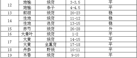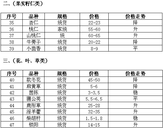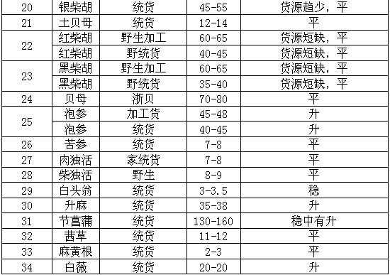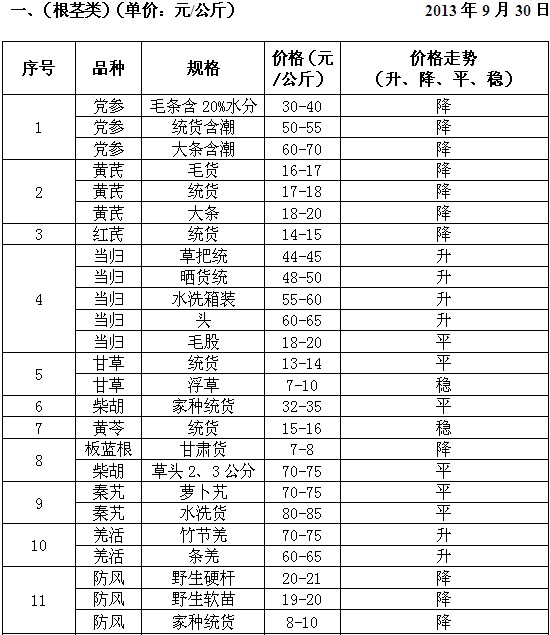 九月甘肃陇西文峰中药材市场销售品种价格及走势表
