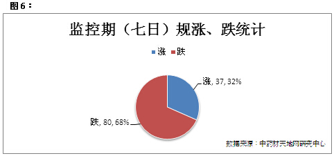 本监控期(2014.10.22-2014.10.28),升价品规37个,升价品规占变价总量32%;降价品规80个,降价品规占变价总量68%。(见图6)