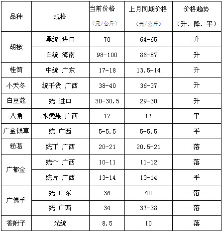 二、热点点评 胡椒:行情在本期延续上期的升势,涨幅更大,现海南白胡椒统货市价已经升至98-100元之间,黑胡椒也上扬至70元左右,货源走动较畅。 后市点评:胡椒行情在经历了较长一段时间的沉淀之后,利好终于在需求旺季来临的情况下再次被触发,成为本期引人注目的焦点。对于胡椒的后市,供求关系仍然会越来越紧张,在商家以及人气的推动之下,后市继续上攀的几率仍会居高不下。 小天冬:产新仍在持续,目前产量仍不大,市场行情持续向好,现一般货售价在36-37元之间,好货已经超过40元,市场货源走动正常。 后市点评:小天冬近几年生产一直在调减,库存也在逐渐消化,使得今年的行情能够持续保持反弹的势头。关于其后市,因为之前有高价的吸引,所以在近年的低价期,又逐渐吸引了一部分商家的关注,预计接下来在商家的积极参与之下,行情仍将会继续走高。 香附子:本期价格下滑幅度较大,目前毛香附统货落至7-7.5元之间,光统货8.3-8.5元,光选货9-9.5元,货源走动一般。 后市点评:香附子本期正值产新,加上之前尚有库存的积累,行情在本来就不景气的状况之下无法坚持,出现了明显的下滑。目前的价位,对种植户的心理影响较大,采挖积极性下降,导致近来上市量又不多,预计后市受生产成本的支撑,价难以再降,另外库存的压力使得其又难有大的提升空间。 佛手:本期市场货源走动不畅,新货陆续有充市,行情持续下滑,目前广西统片市价在34-35元之间,广东货36-37元,少商关注。 后市点评:广佛手近年产量正常,但库存仍有相当部分,且有的还是高价货,前面两年虽每到产新都引起商家的注意力,但每次都是后劲不足,所以佛手的人气已经逐渐涣散。目前产区尚有较多货源没走出,生产上近年发展的面积较大,已经进入正常结果期,所以其后市除非有自然灾害的影响,否则难有利好。 三、综合分析 本期,市场交易的状况仍是一般,除了个别品种有特出的表现之外,大部分仍是平淡无奇。本期行情价格发生变动的品种,仍然遵循了供求关系的市场规律,胡椒、桂皮、天冬这些供求偏紧的品种价格上涨;广佛手、香附、广郁金等随着产新供应量的增加,价格下滑。对于市场的后市,目前这种大环境需求不振的状态仍会持续,商家需要在平淡中等待,等待供求关系的转变。 http://www.zyctd.com/fenxi-item-813145-1-212.html (责任编辑:admin) |